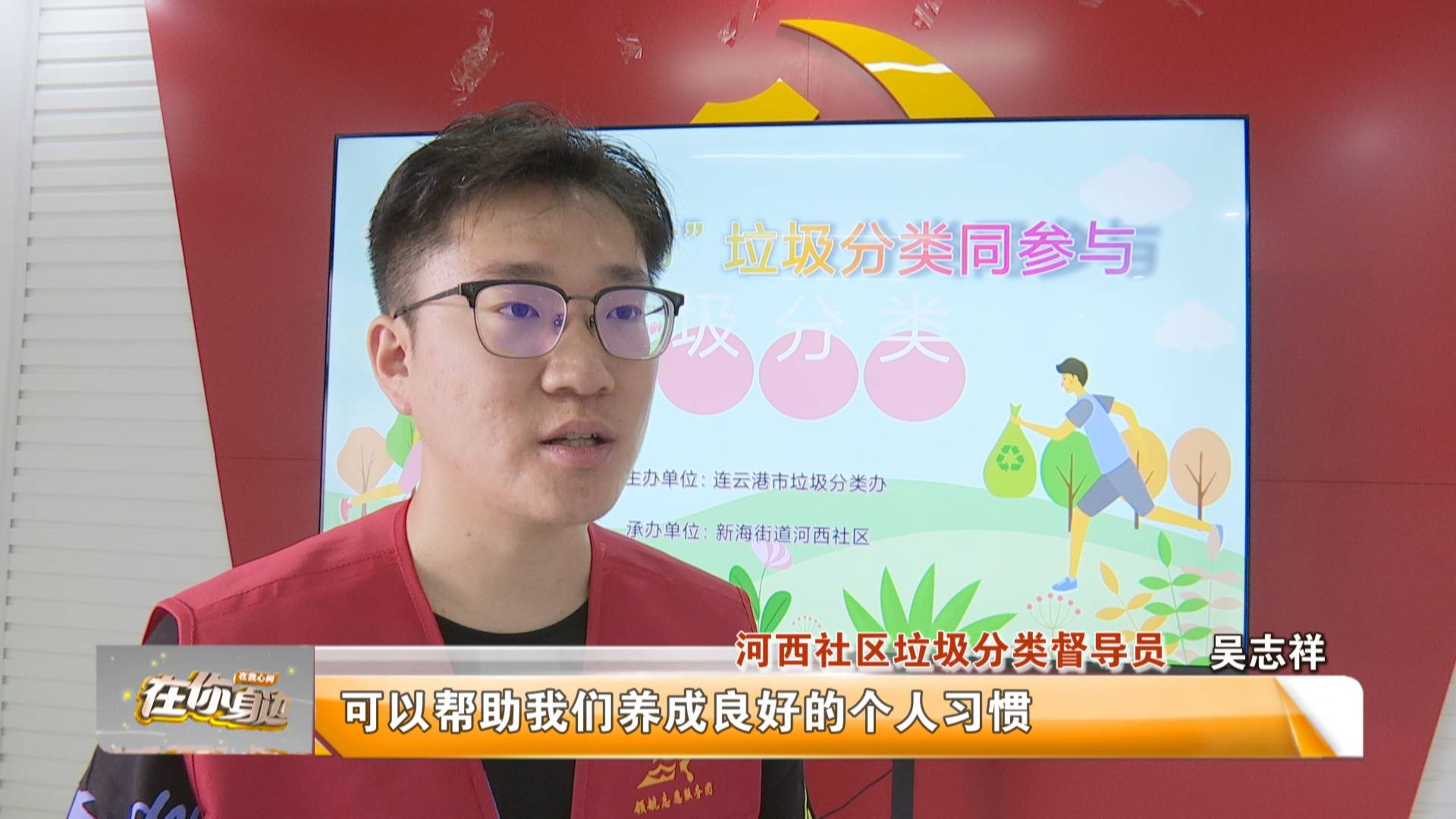 海州区新海街道河西社区垃圾分类督导员 吴志祥: 垃圾分类首先对我们个人来说,可以帮助我们养成良好的个人习惯,提升个人的素质。对于我们整体的城市而言,让我们的城市更加整洁靓丽,让我们努力做好垃圾分类,进行垃圾分类,让家园更加美丽。