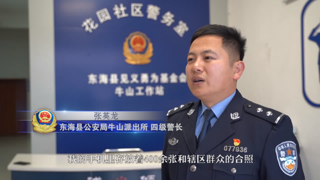 东海县公安局牛山派出所基础工作中队副中队长 张英龙:我的手机里存放着400余张和辖区群众的合照,这些照片都是在辖区入户走访时拍的,或是我为他们解决问题或者化解矛盾纠纷时,跟他们拍的。走访时之所以想起和群众拍合影留念,是想通过这种方式拉进与群众的距离,同时也想通过这种方式加强自己的对该户居民的印象。