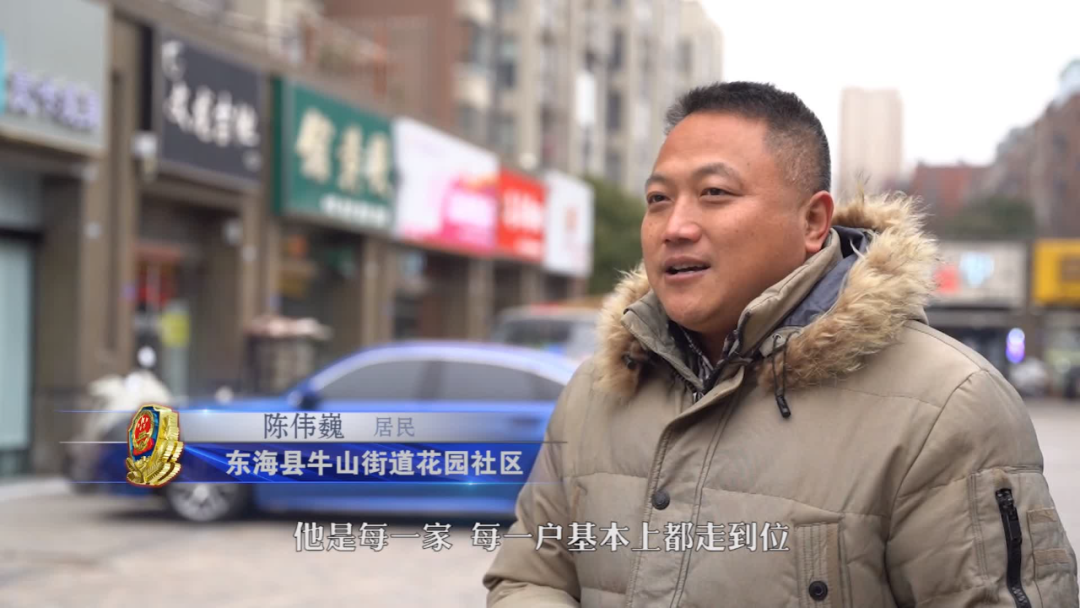 东海县牛山街道花园社区 居民 陈伟巍:他是每一家、每一户基本上都走到位,我们家有闺女小朋友,有事我们要找小张警官,不光我们大人找,老人找,小孩也喜欢,嘴里念叨着小张警官,小张警官到我们辖区可以说有四五年了,他确实是扎根基层,他扎根基层的同时,把我们的矛盾不上交,问题就化解在基层,他是值得我们称赞的警官。