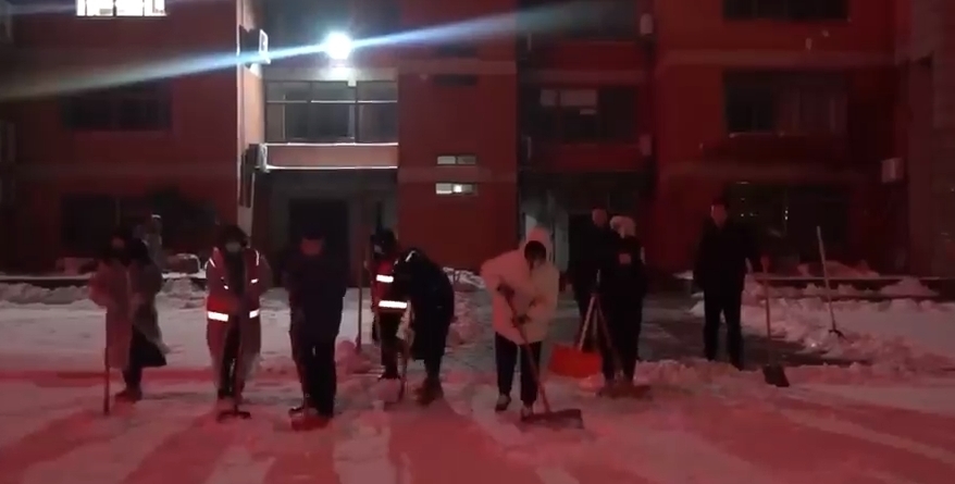 由于22号学校全面复学,大庆路小学组织工作人员21号来到学校门口清理道路上的冰冻,老师和志愿者们不畏严寒,拿着扫把、簸箕、铁铲等工具进行扫雪除冰。大家分工明确、齐心协力,对学校进出的大门口、校园内环道路以及教学楼大台阶等重点通行路段的积雪进行了清理,同时在容易出现安全隐患的路面采取了必要的防范措施,为广大师生复学赴校做好了充分的准备。