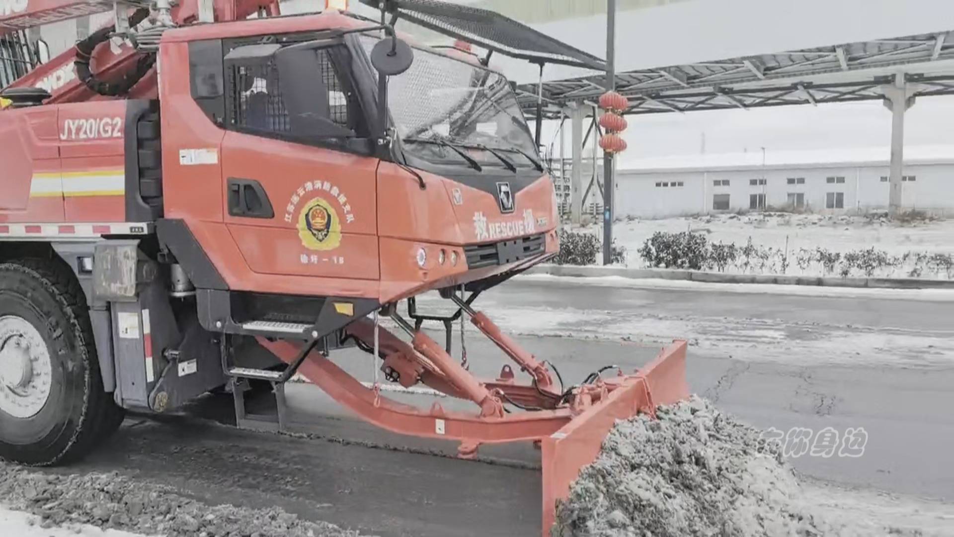 在徐圩新区,面对连续的恶劣天气,徐圩新区消防救援大队党员突击队坚持奋战在扫雪除冰一线,利用多功能抢险救援车开展机械化除冰工作,同时配合采取人工抛洒融雪剂,防止地面再次结冰,有效确保了石化基地交通主干道畅通。