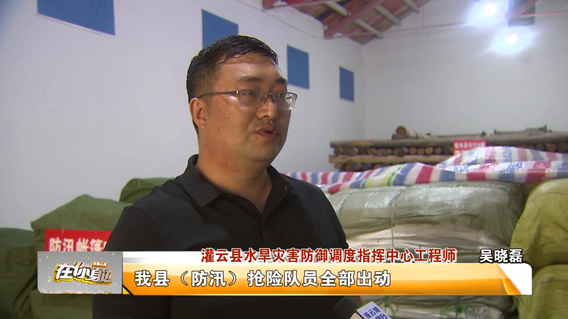 灌云县水旱灾害防御调度指挥中心工程师 吴晓磊说,县(防汛)抢险队员全部出动,并调动两台装甲车,三台挖机,十台自卸卡车,将300吨块石运至新沂河沿线,备情使用。