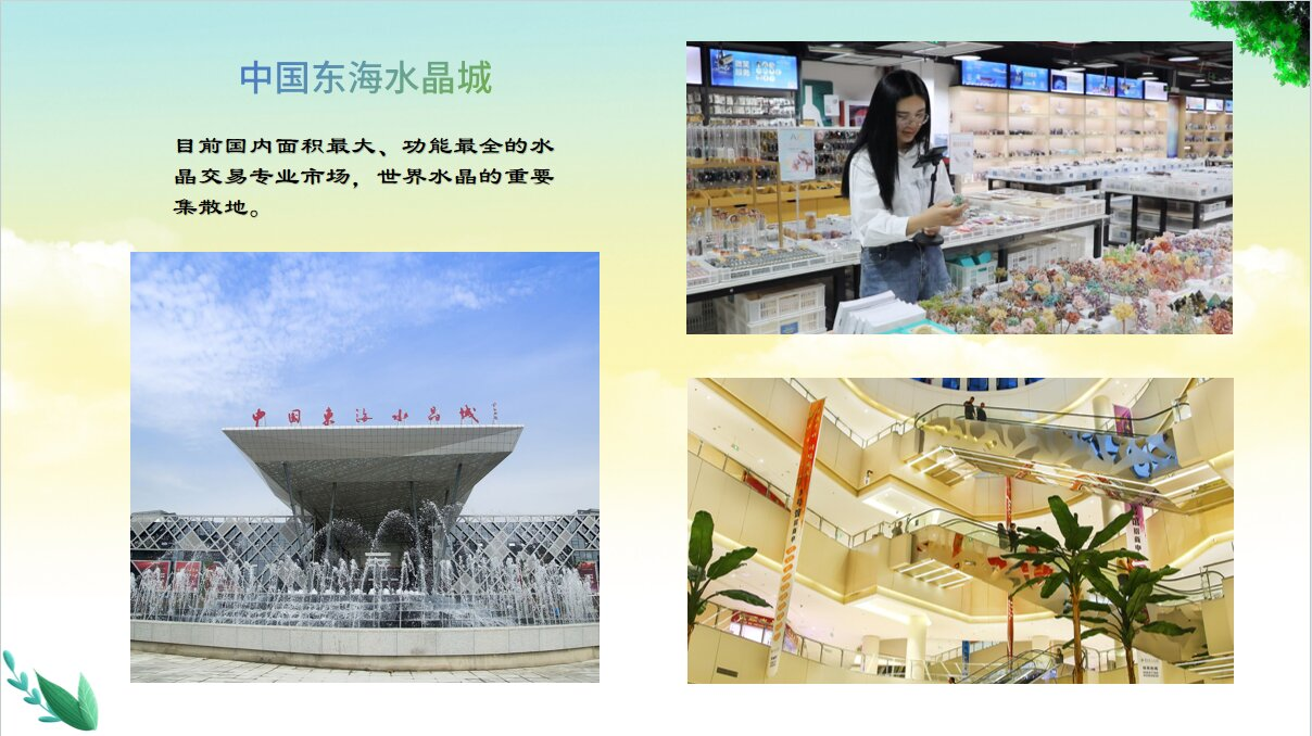 中国东海水晶城,目前国内面积最大、功能最全的水晶交易专业市场,也是世界水晶的重要集散地,有数千家水晶商户。