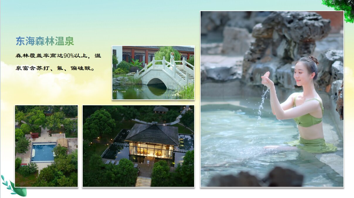 东海森林温泉,位于李埝林场,森林覆盖率高达90%以上,温泉富含苏打、氟、偏硅酸及多种矿物质与微量元素,属于天然苏打温泉。