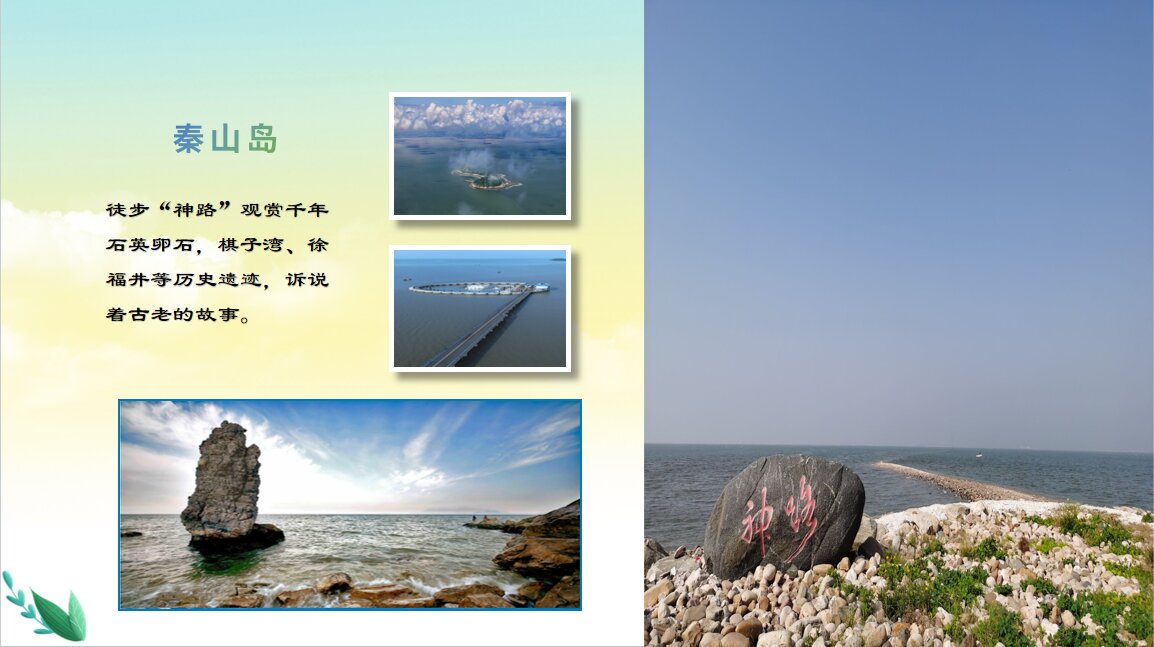 秦山岛,承载着千年传说的海上仙岛,徒步“神路”见证千年石英卵石在潮起潮落间时隐时现,棋子湾、徐福井等历史遗迹,诉说着古老的故事。
