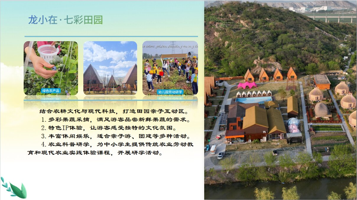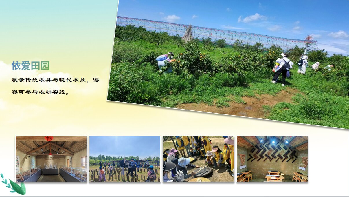 依爱田园,展示传统农具与现代农技,游客可参与农耕实践,感受“从田间到餐桌”的绿色产业链。