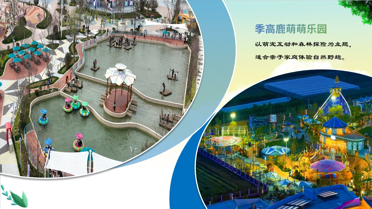 季高鹿萌萌乐园,以萌宠互动和森林探险为主题,适合亲子家庭体验自然野趣,配套露营区与主题游乐设施,释放儿童天性。