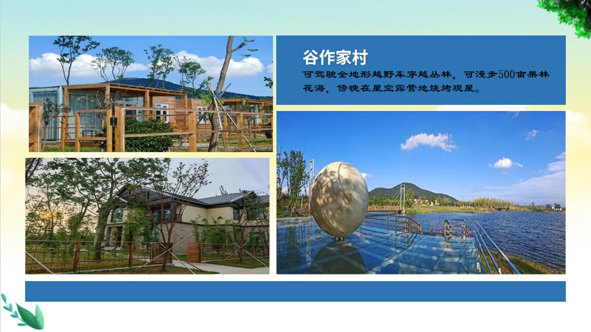 谷作家村,可在山地骑行道上追风,可驾驶全地形越野车穿越丛林,也可漫步500亩果林花海,傍晚在星空露营地烧烤观星。