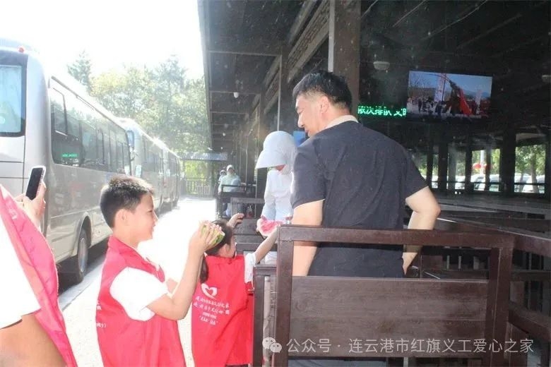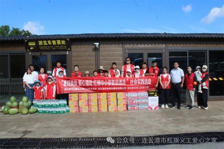 2025年7月20日上午08:00,连云港市红旗义工爱心之家党支部携手连云港多助保安服务有限公司共同组织志愿者家庭、爱心人士一起走进连云港花果山旅游公司开展“夏日炎炎 爱心涌动 红领巾小使者送清凉 ″社会实践活动。