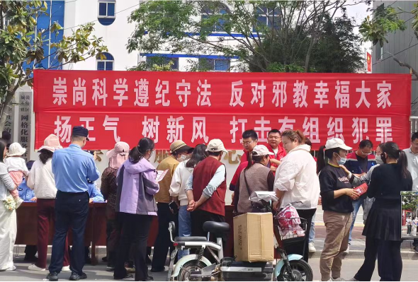 一方面,组织各县区全面盘活活动资源,围绕识邪、辨邪、拒邪主题,在社区、广场、商圈等人员密集场所集中开展社会警示宣传,通过设置咨询台、发放折页、展示展板等形式,向群众普及反邪教知识;另一方面,积极策应公安机关打处行动,将宣传教育与打击整治有机结合,形成宣传引导+精准打击的联动效应,切实提升群众防范邪教的意识和能力。